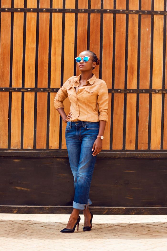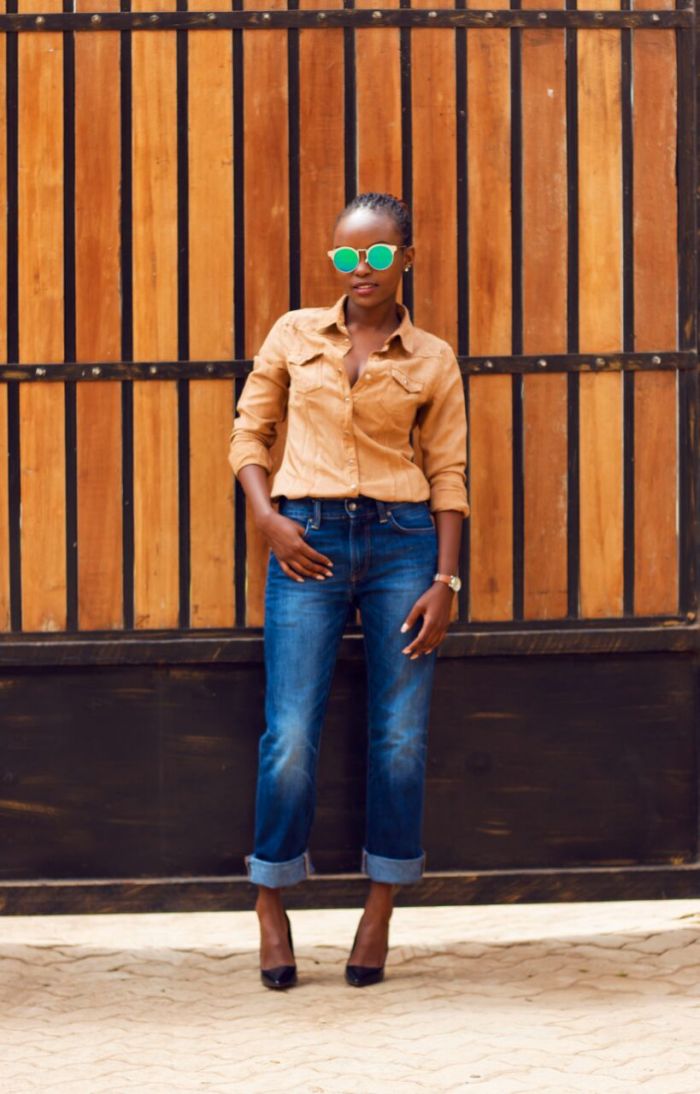 Personally I am totally taken by this type of jeans, Besides being versatile I love the comfort and uniqueness embodied in them. On this post I simply paired my jeans with a brown shirt, pumps and sunglasses to add some urban edginess to the outfit. A very laidback, simple and yet stylish approach I would say, not to mention a perfect friday work outfit.